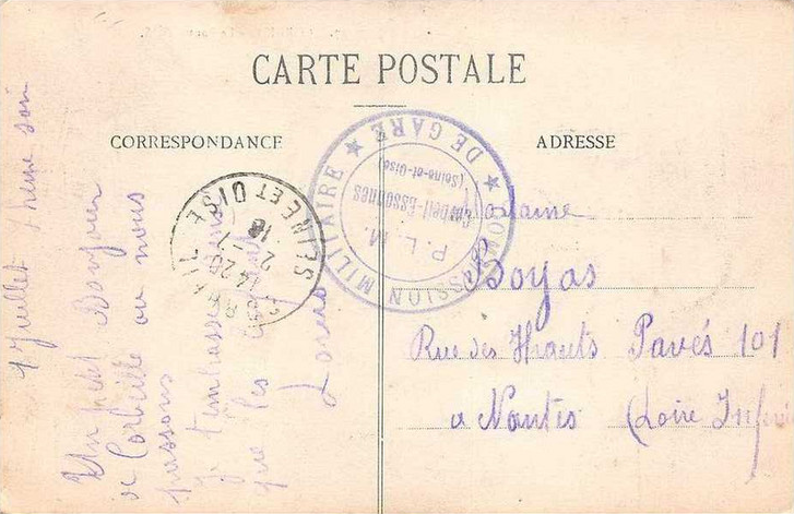 - Destinataire: Madame Boyas, rue des Hauts Pavés 101 à Nantes (Loire-Inférieure).