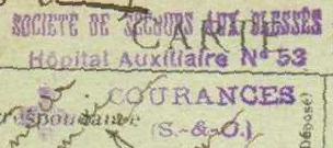 - Tampon: Société de secours aux blessés, Hôpital Auxiliaire n°53, Courances (Seine-et-Oise)
