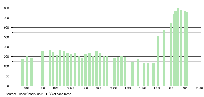 Sur la base de données empruntées, pour les années 1793-1999, au site du Laboratoire de Démographie et d'Histoire Sociale de l'EHESS, École des hautes études en sciences sociales; et, pour les années 2006 à 2021, au site de l'INSEE, Institut national de la statistique et des études économiques.