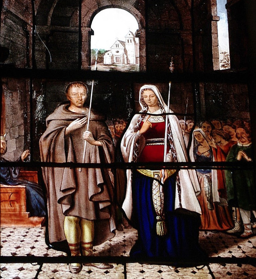 - La calomnie ne tarda pas. Le fiancé lésé porta plainte auprès du roi Childebert (fils de Clovis), arguant que les deux amis étaient liés d’une passion un peu moins désincarnée que l’amour divin! Childebert se trouvant alors à Palaiseau, ordonna qu’on amène les deux suspects à son Palais. Afin de déterminer leur culpabilité ou leur innocence, ils furent soumis au jugement de dieu (aussi appelé ordalie). À cette époque, les diverses épreuves à subir n’offraient que peu de chances aux accusés. Il fallait par exemple plonger sa main dans l’eau bouillante ou dans un gant de fer rougi au feu et s’en sortir indemne afin d’être jugé innocent… Dans le cas contraire, la culpabilité paraissait évidente!