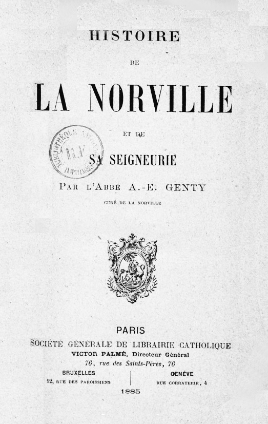 - Antoine-Eugène Genty, Histoire de La Norville et de sa seigneurie (IX+364 p., in-18, choix de documents en appendice), Paris, V. Palmé, 1885.