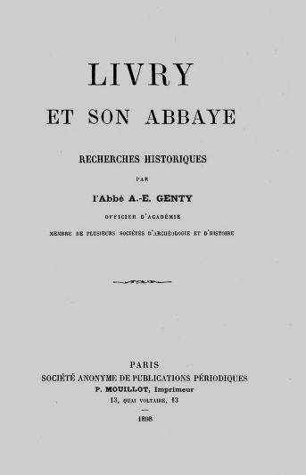 - Antoine-Eugène Genty, Livry et son abbaye, recherches historiques (146 p., in-8°, gravures, planches, plan), Paris, Société anonyme de publications périodiques, 1898.
