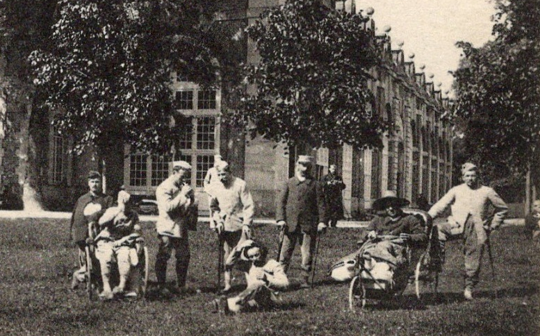 - L'hôpital auxiliaire de Courances a été créé à l'initiative de Berthe de Béhague marquise de Ganay (1868-1940), qui avait fondé dès février 1914 l'Association des Infirmières-Visiteuses de France.