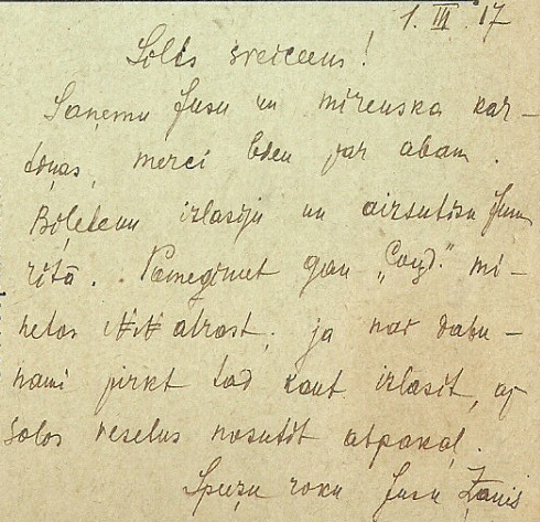 - J'espère que tu est toujours en bonne santé. Quand à moi fais tout ce que je peux pour y être, je suis toujours le même, ma blessure va bien aussi. Je termine en t'embrassant bien fort.