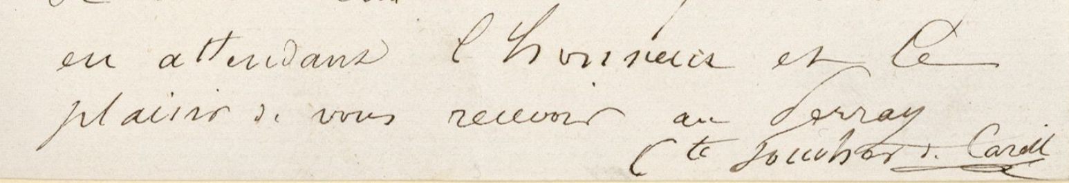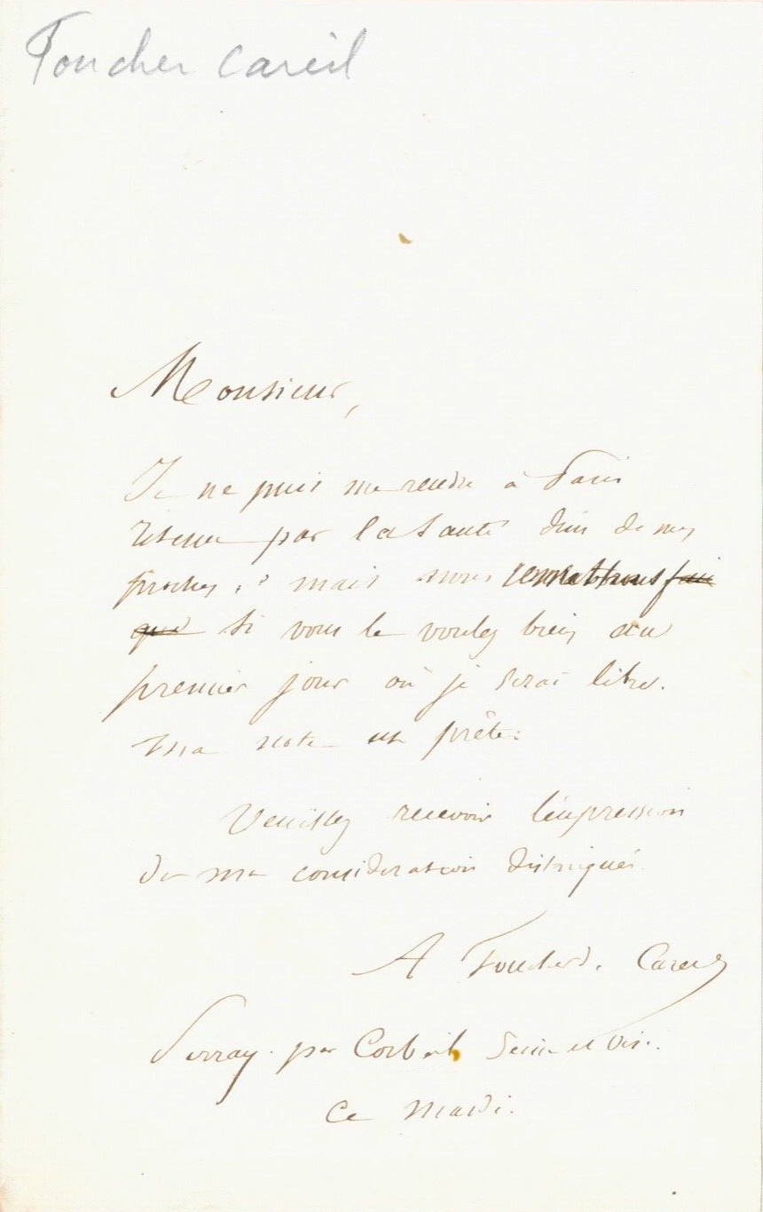- Billet de Foucher de Careil (Château du Perray, sans date) — Site d'enchères eBay, octobre 2023.