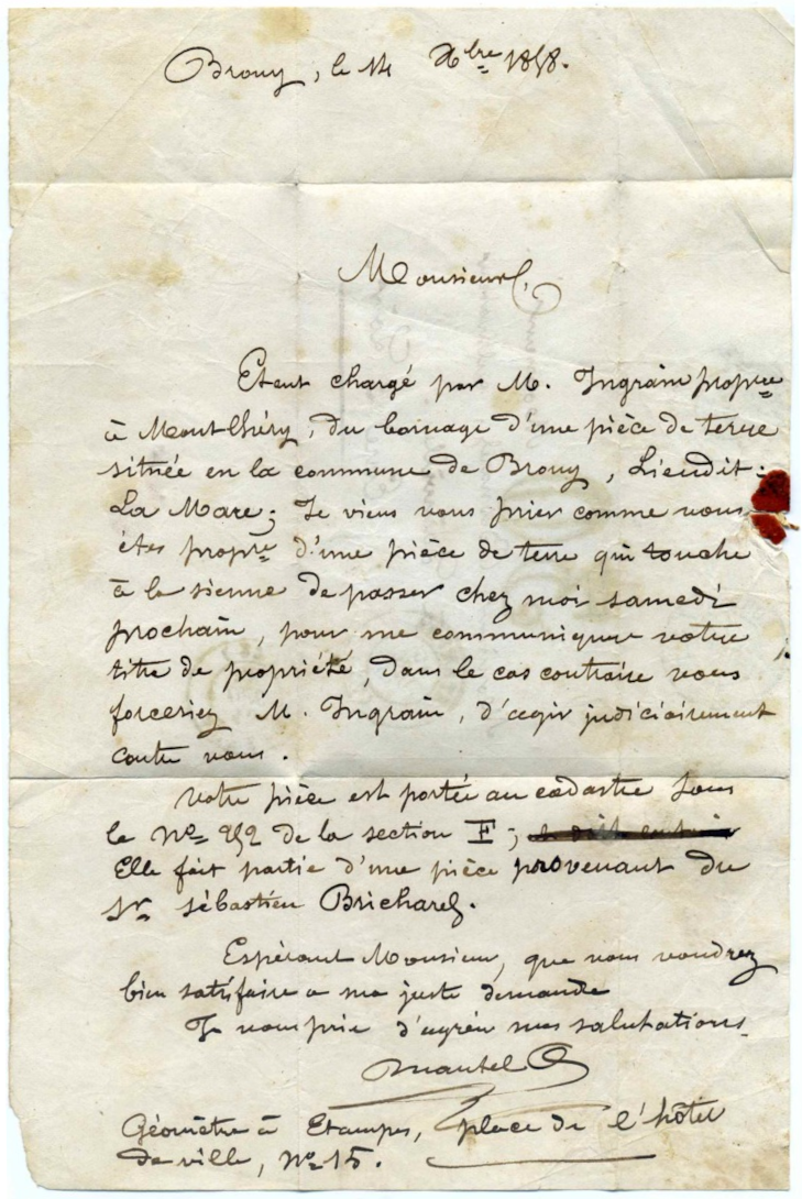 - Lettre du 14 décembre 1858, rédigée à Brouy.