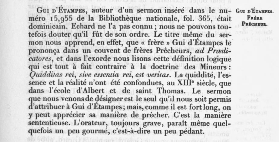 - Barthélémy Hauréau, “Sermonnaires”, in Histoire littéraire de la France XXVI (1898) 387-468 spéc. 399: “Gui (sic) d'Étampes”.