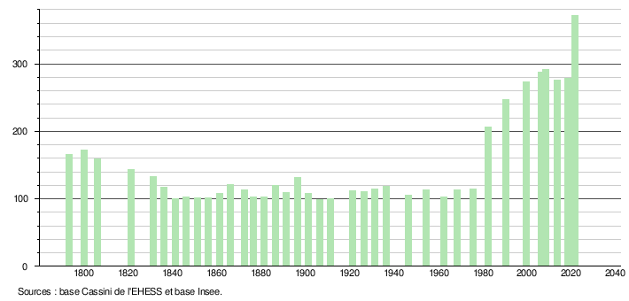 Sur la base de données empruntées, pour les années 1793-1999, au site du Laboratoire de Démographie et d'Histoire Sociale de l'EHESS, École des hautes études en sciences sociales; et, pour les années 2006 à 2021, au site de l'INSEE, Institut national de la statistique et des études économiques.