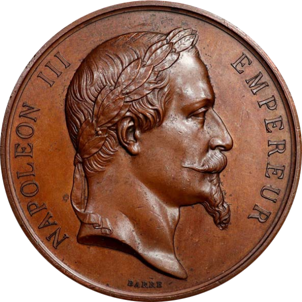 - Avers: NAPOLEON III EMPEREUR — BARRE [Albert-Désiré Barre (1818-1878), médailleur]