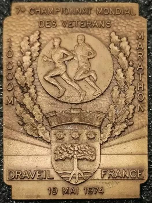 Médaille du 10e championnat international de marathon des vétérans à Draveil le 19 mai 1974