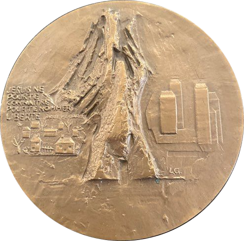 - Avers: JE SUIS NE POUR TE CONNAITRE POUR TE NOMMER LIBERTE — PAUL ELUARD — 1959 — 1969 — LG. — XE ANNIVERSAIRE DE LA MUNICIPALITE OUVRIERE D'UNION DEMOCRATIQUE ET LAIQUE.