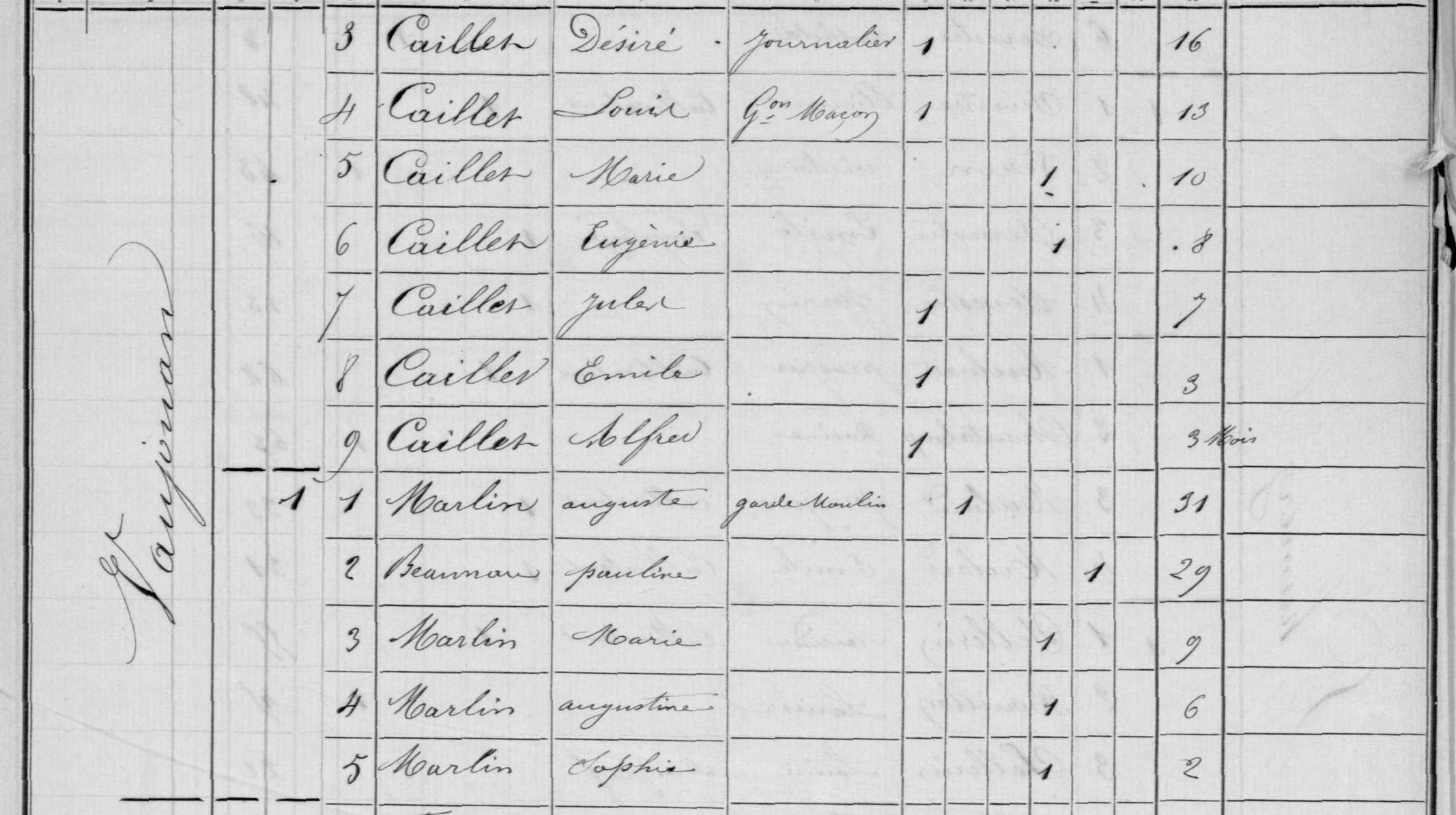 - 1856 — Joseph Mézière, garde moulin — Jacques Bordes, garde moulin — Casimir Caillet, journalier.