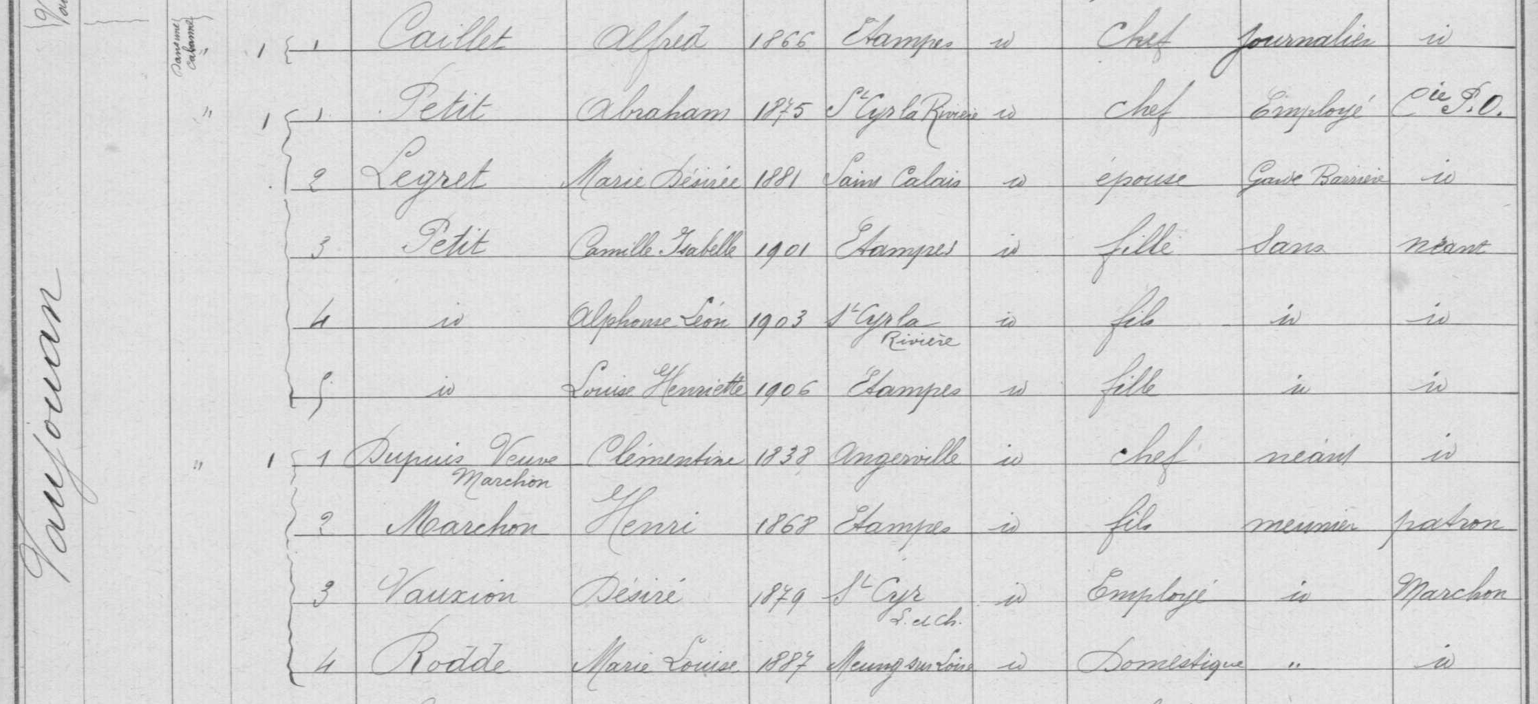 - 1906 — Marie-Louise Rodde, domestique — Alfred Caillet, journalier.