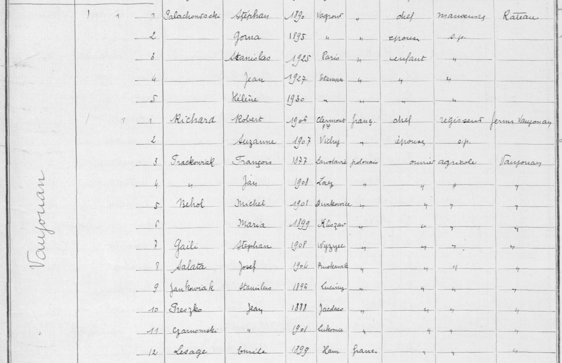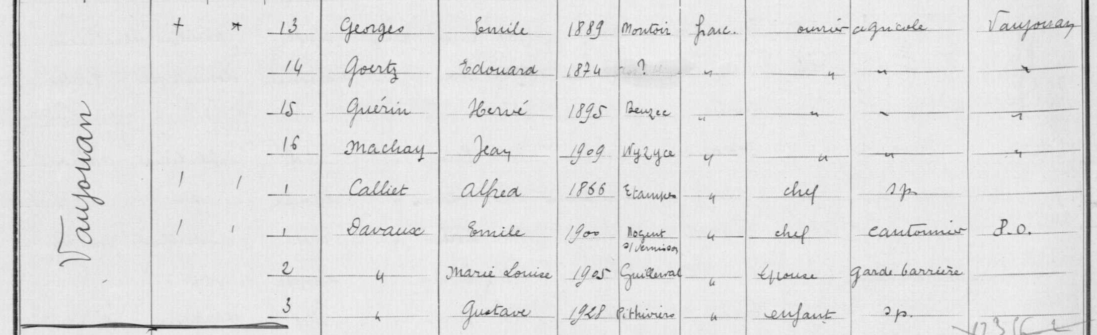 - 1931 — Désormais, les ouvriers de la ferme de Valnay sont explicitement recensés comme résidant à Vaujouan.