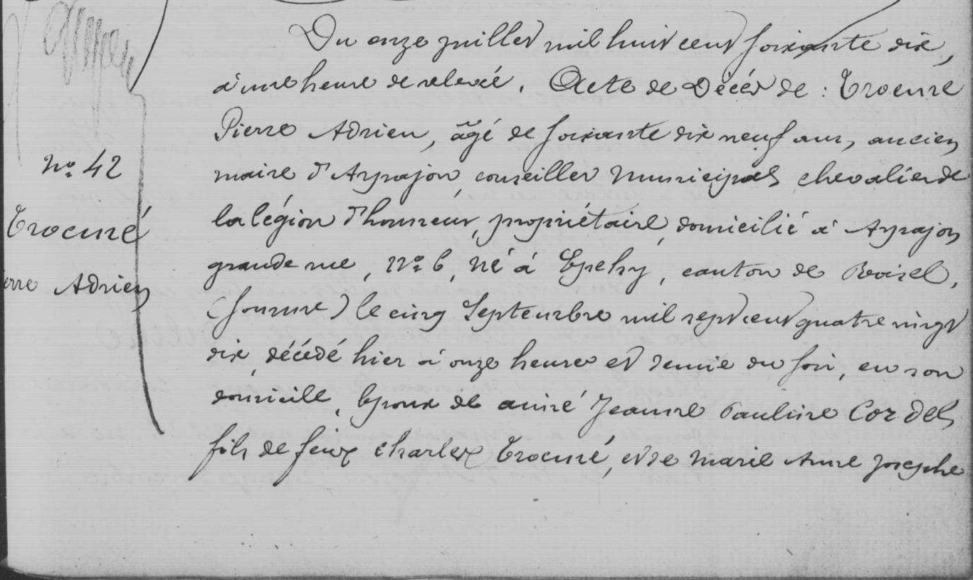 - Mort à Arpajon le 10 juillet 1870.