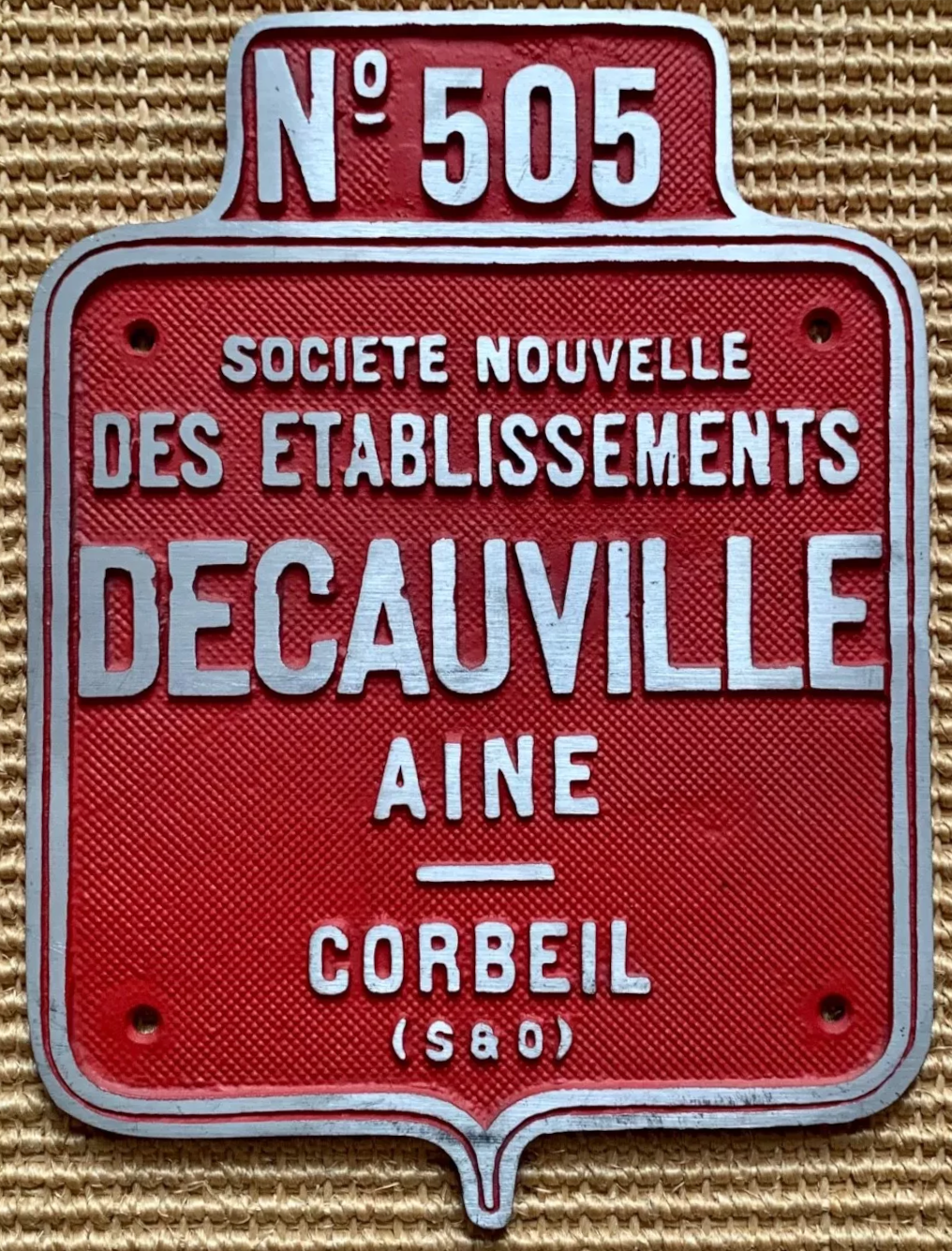 - Avers: N°505 — SOCIETE NOUVELLE DES ETABLISSEMENTS DECAUVILLE AINE — CORBEIL (S & O)