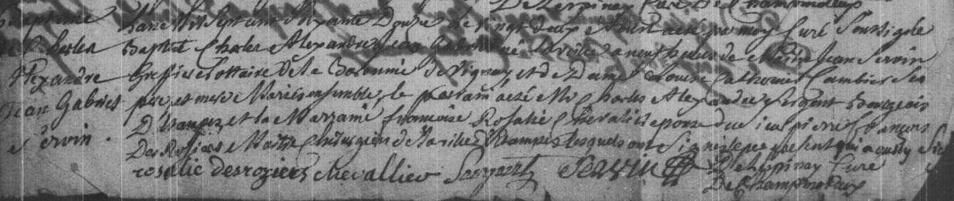- Charles-Alexandre-Jean-Gabriel Servin, né le 21 août 1772 à Champmotteux, était le fils de Louise-Catherine Cambier et de maître Jean Servin greffier notaire de la baronnie de Vignay.