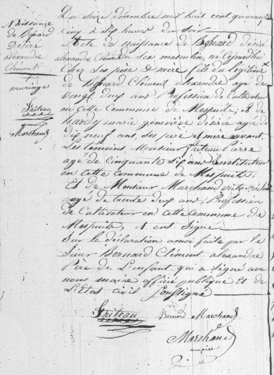 - Naissance à Mespuits en 1845 — AD91 4E/2029.