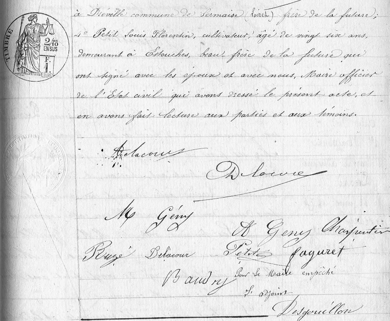- Théophile-Aimable-Victor Delacour (1838-?; marié le 8 avril 1863 avec Louise-Héloise Thuault