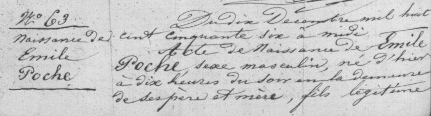 - De cette union naquit Émile Poche premier du nom (1856-1927).