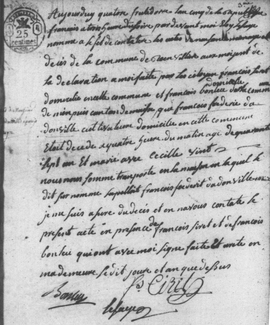 - Il mourut à Roinvilliers le 14 fructidor an 5 (31 août 1797) âgé de 47 ans.