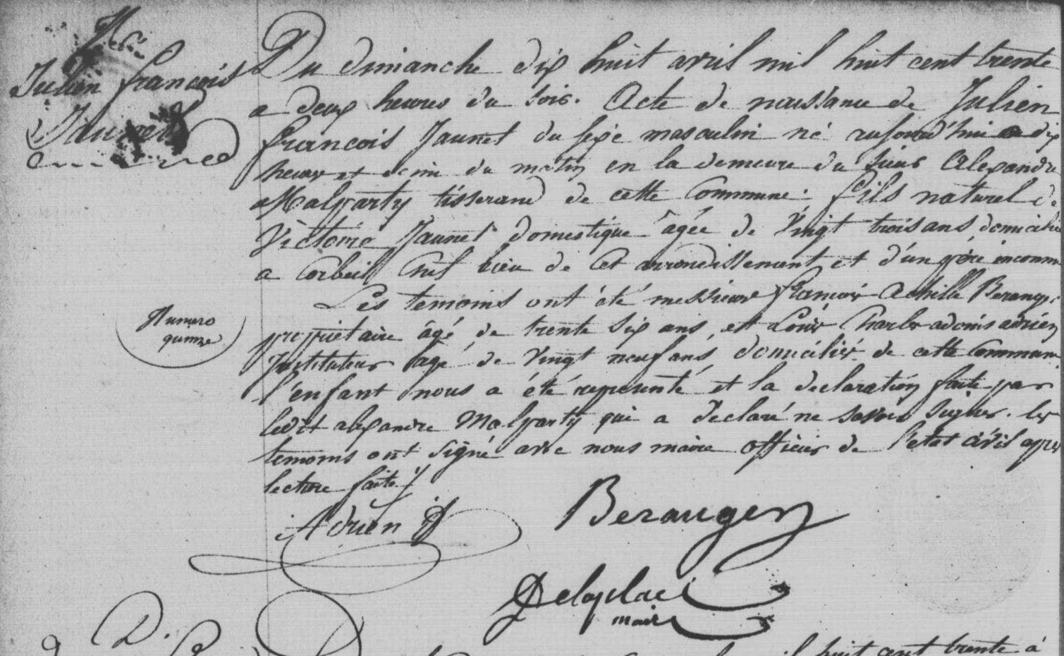 - Naissance à Vert-le-Grand en — AD91 4E/2891.