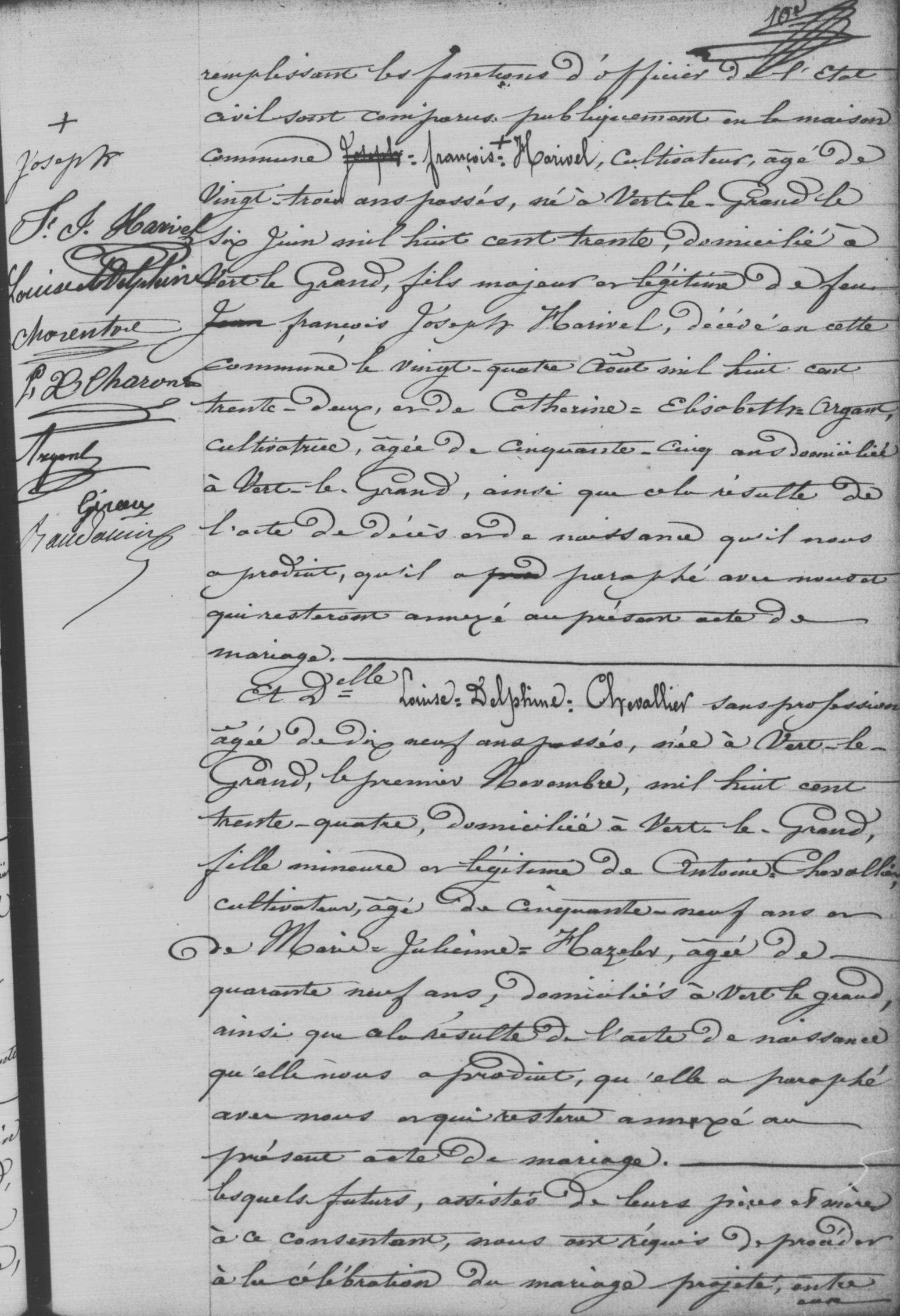 - Mariage à Vert-le-Grand en 1853 — AD91 4E/2893.