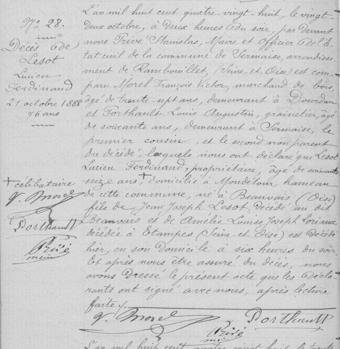 - Témoin le 4 février 1875 à Paris 11e arrondissement du mariage d'Édouard Bouvier avec Angèle-Louise Morel: “Ferdinand Lucien Lesot, abbé, âgé de soixante trois ans, demeurant au château de Mondétour; commune de Sermaise, Seine-et-Oise, cousin” (AD75 V4E/3928).