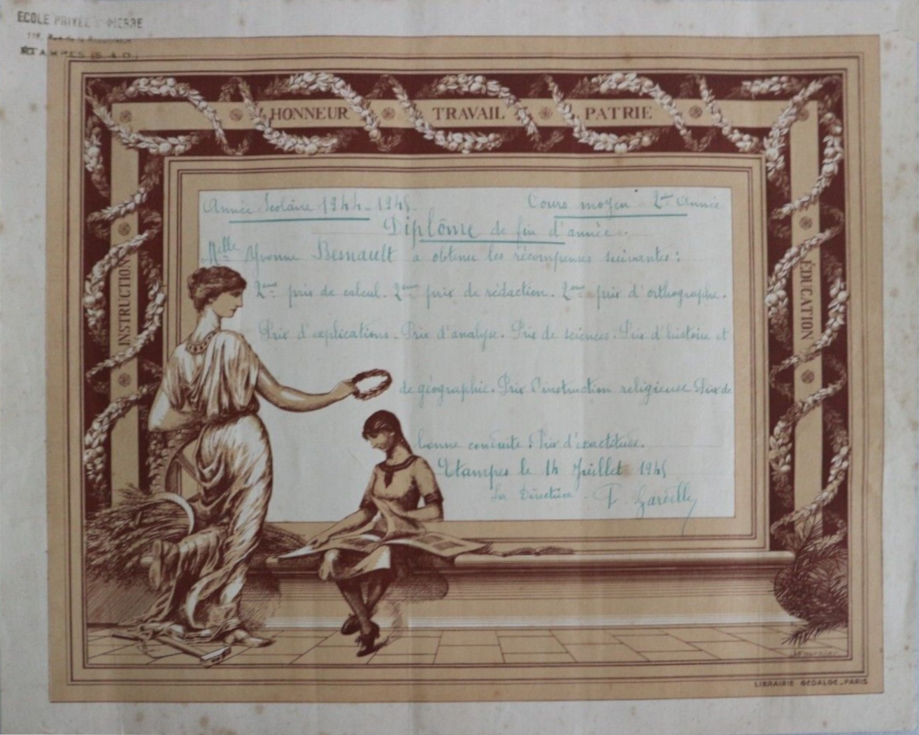- Diplôme de fin d'année (juillet 1945)