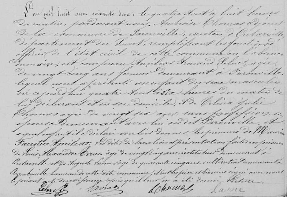 - Naissance à Faronville en 1862 — AD45 7E-240/C/1.