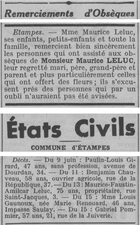 - Décès — L'Abeille d'Étampes 126-25 (18 juin 1938) 3.
