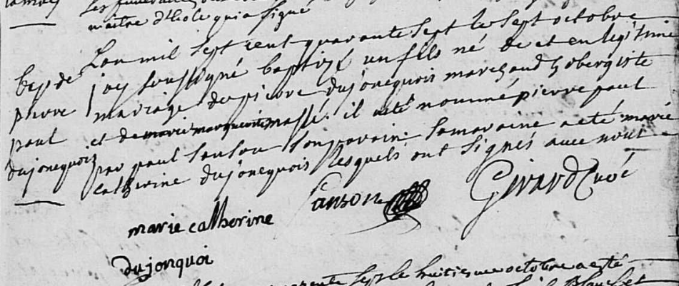 - Jean-Pierre Dujoncquoy (1785-1867), marié à Auneau (Eure-et-Loir) le 16 juillet 1807 avec Marie-Louise-Julie-Rosalie Rousseau (1789-1853)
