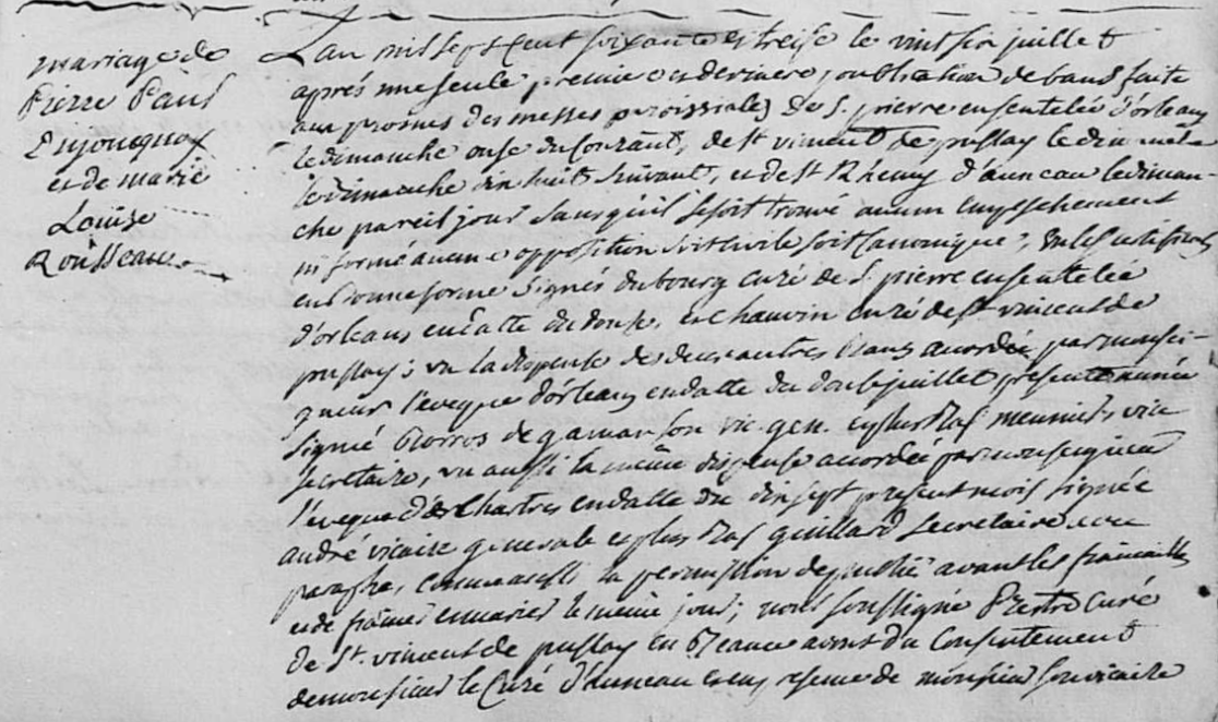 - Il se maria à Auneau (Eure-et-Loir) le 26 juillet 1773 avec Marie-Louise Rousseau (1756-1830)