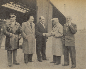- Philippe Bille vient de recevoir la croix de chevalier de la Légion d’honneur devant les hangars Farman qu'il vit naître à Toussus. On reconnaît de gauche à droite: le commandant Tessier, commandant de l'aérodrome de Toussus-le-Noble, Lucien Bossoutrot, Philippe Bille, Georges Kirsch, vainqueur de la Coupe Deutsch 1921 qui félicite le récipiendaire et Raymond Saladin.
