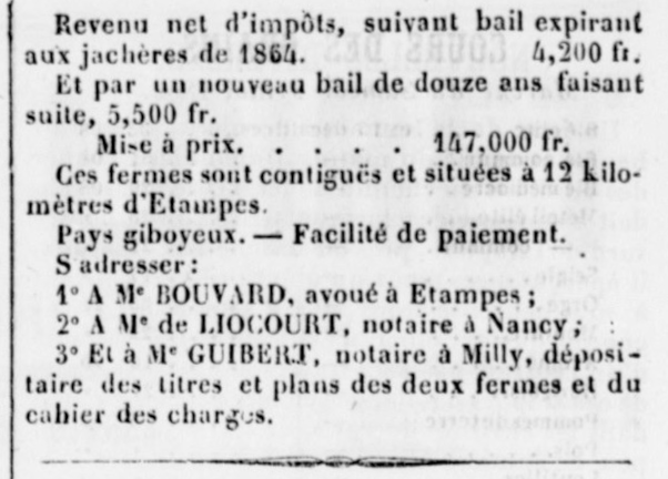 - Même vente — Le Courrier du Loiret 75/19 (10 mai 1863) 3.