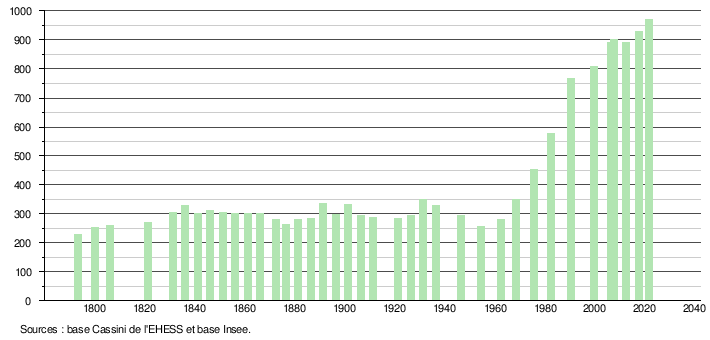 Sur la base de données empruntées, pour les années 1793-1999, au site du Laboratoire de Démographie et d'Histoire Sociale de l'EHESS, École des hautes études en sciences sociales; et, pour les années 2006 à 2021, au site de l'INSEE, Institut national de la statistique et des études économiques.